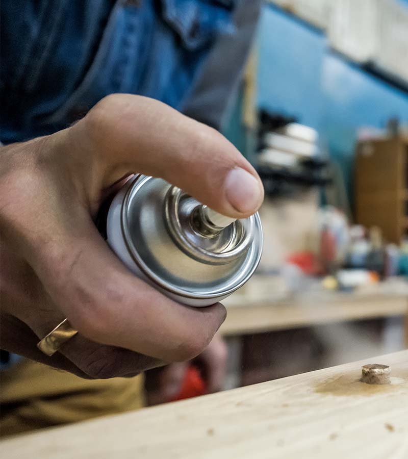 Goed schudden voor gebruik. Spray gelijkmatig op beide oppervlakken bij permanente verbindingen of op één oppervlak bij tijdelijke bevestiging. Even laten aandrogen (ca. 1 minuut) en daarna de materialen stevig aandrukken.